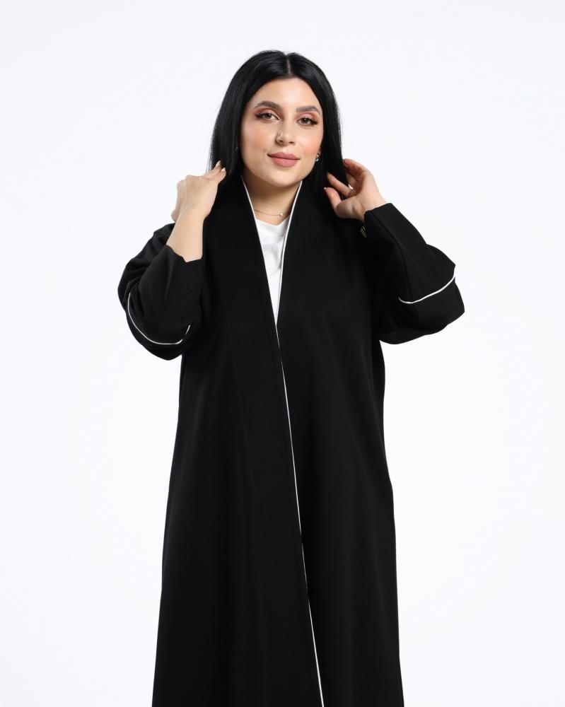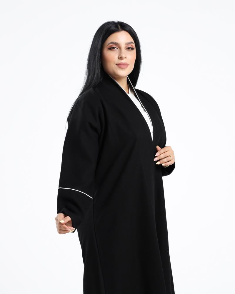 اختاري الأناقة الراقية مع عباية بتطريز الكلاسيكية السوداء ذات التصميم العصري والبسيط في آنٍ واحد. عباية بتطريز مثالية للسيدات الباحثات عن الجمال الهادئ والأناقة المحتشمة في كل مناسبة، سواء كانت رسمية أو يومية.