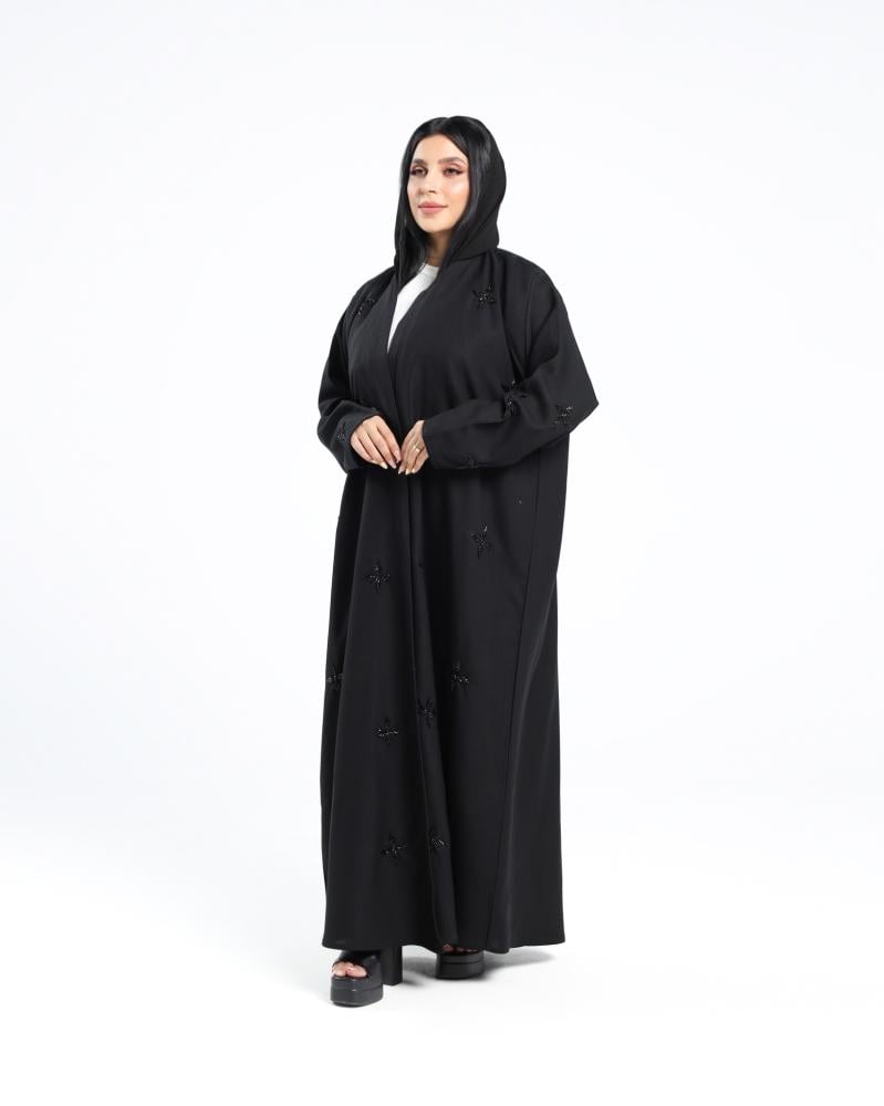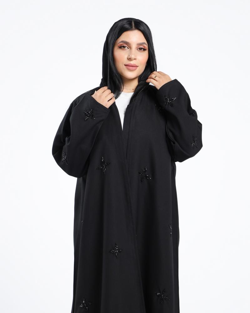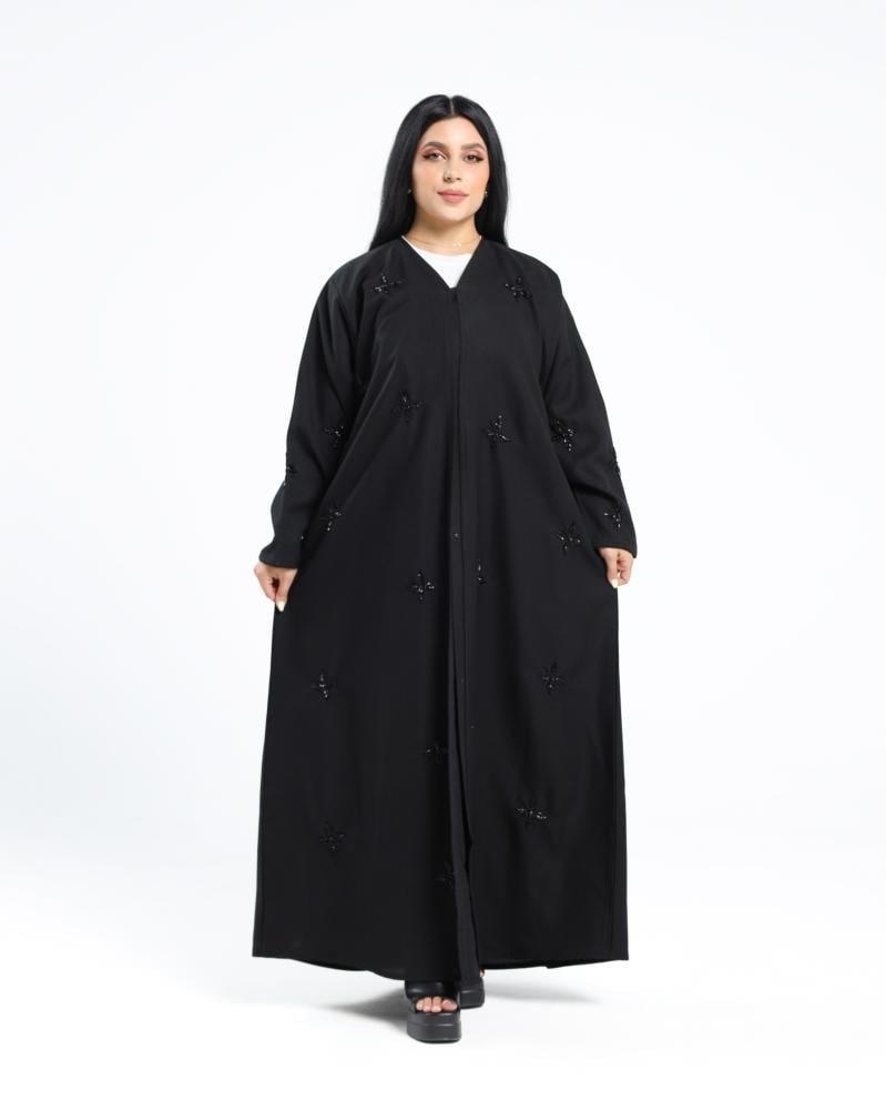 لا تفوتي فرصة اقتناء هذه العباية المميزة بتطريزاتها الراقية وتصميمها العملي. أضيفيها الآن لسلة مشترياتك وكوني دائماً في قمة أناقتك!